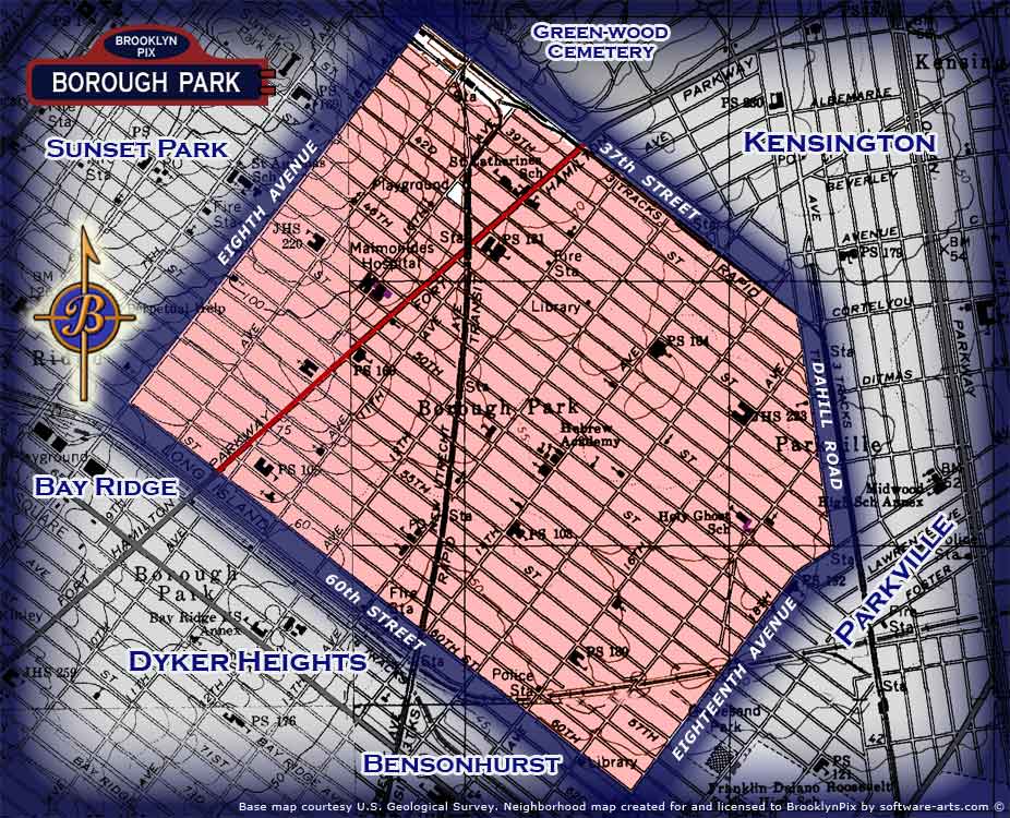 Neighborhood borders map for Borough Park โ Old NYC Photos