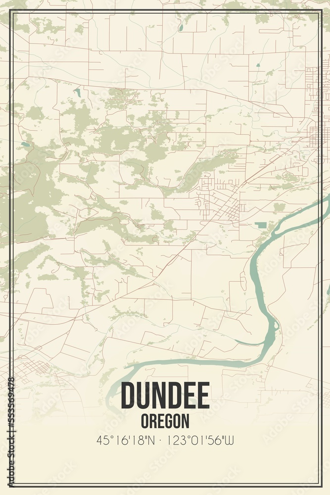Retro US city map of Dundee, Oregon. Vintage street map. Stock